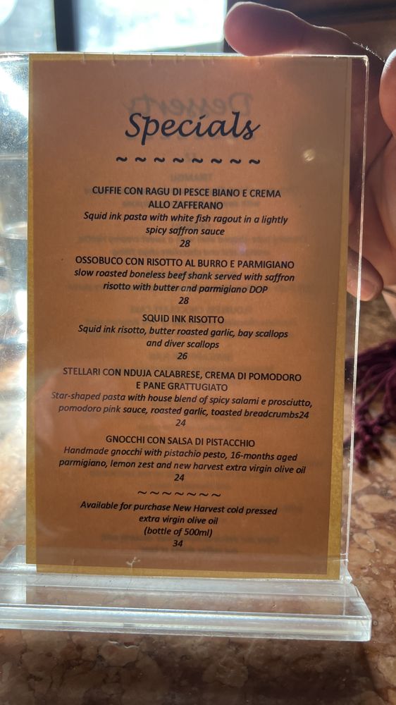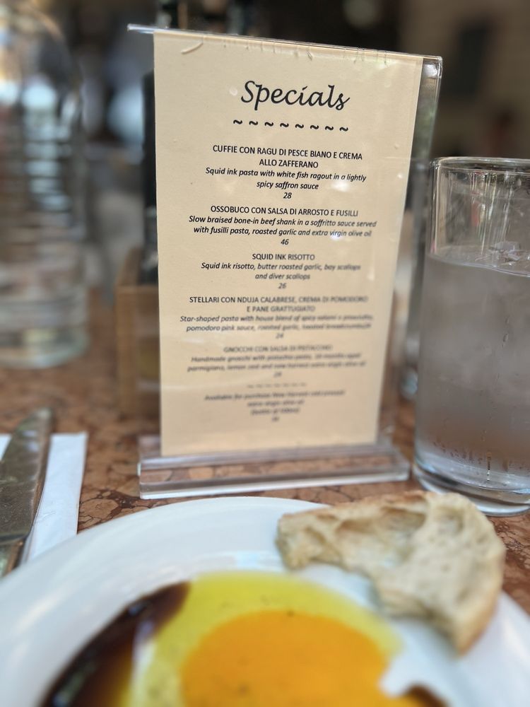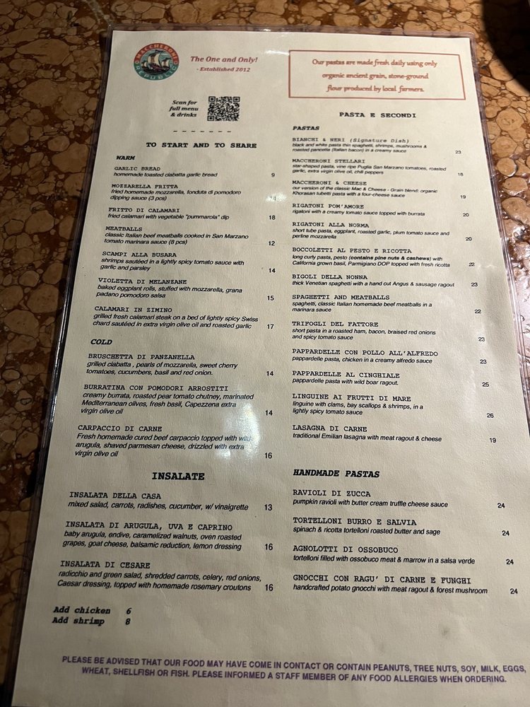 Customers rave about the freshly made pasta dishes, such as the Bigoli Della Nonna and Boccoletti Al Pesto Y Ricotta, which are bursting with flavor and texture. The ambiance is charming, with options for outdoor seating and attentive service. Complimentary bread and delightful appetizers like garlic bread and burrata set the stage for a memorable dining experience.