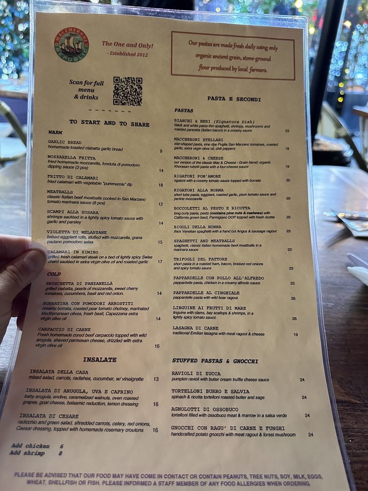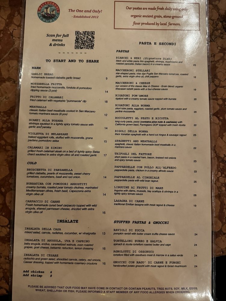 Introducing the menu at Maccheroni Republic, a captivating Italian wine bar in Los Angeles. Situated at 332 S Broadway, this restaurant boasts a diverse menu with options for every palate. From pescatarian and vegan choices to numerous vegetarian dishes, Maccheroni Republic caters to all dietary preferences.